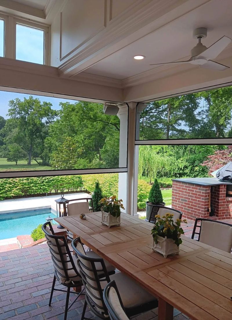 Enjoy bug-free outdoor living with our retractable motorized screens. Dine in peace, keep the flies and other insects out, and enjoy your backyard view without sacrificing comfort. Reclaim your patio and enhance your outdoor enjoyment.